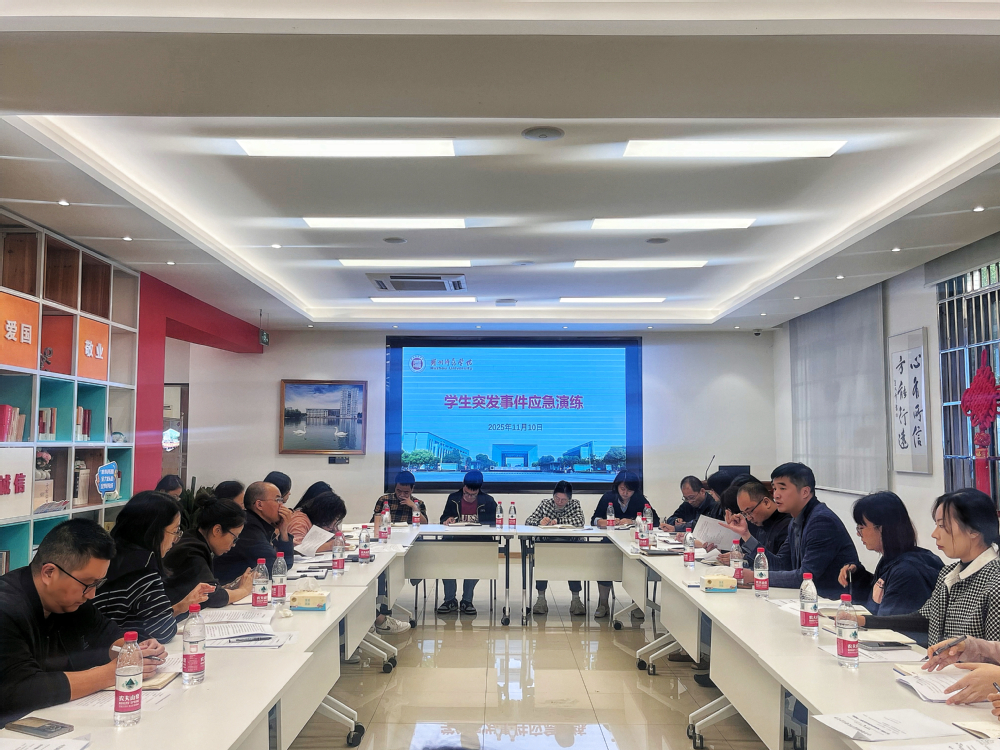 为切实强化校园安全防线,提升各部门、各学院协同应对突发事件的实战能力,11月10日下午,以“提升协同处置能力,筑牢校园安全防线”为主题的学生突发事件应急演练在明德楼党建展厅顺利举行。相关职能部门负责人,各学院党委副书记及学工办主任、辅导员代表参加了本次演练。