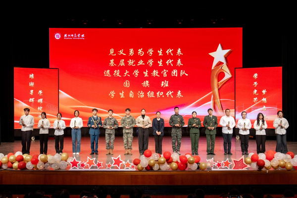 本次盛典围绕“循光·明体之星”“聚光·达用之星”“闪光·荣耀之星”三个篇章,整合学校荣誉体系,分别表彰了十佳大学生、优秀学生、优秀学生干部、艺体类竞赛获奖学生代表;文明班级、优良学风班、优秀寝室、优秀社团、优秀志愿服务团队等集体代表;升学学生、学术科研、学科竞赛获奖代表;国家奖学金、省政府奖学金、校长奖学金获奖学生代表;见义勇为新生、基层就业学生、退役大学生教官、国旗班、学生自治组织学生代表。