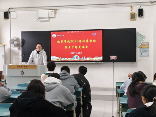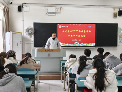 为进一步营造浓厚校园学习氛围,强化班风学风建设,11月11日中午,教育学院(教师教育学院)在12-207教室顺利开展2025年秋季学期学生干部交流会。学院辅导员主持会议,自律部全体干部干事及各班级副班长参会,围绕班级管理与学风建设核心议题展开深入交流。