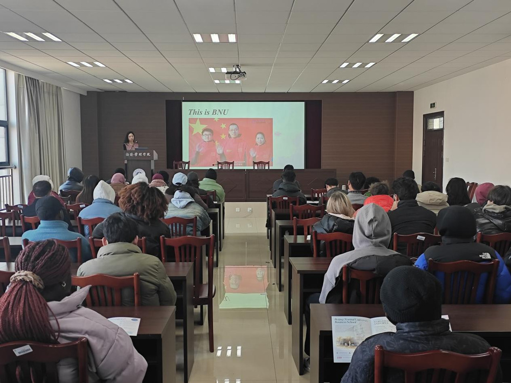 为拓展学院国际学生在华发展路径,助力国际学生把握在华高质量深造机遇,1月10日上午,北京师范大学经济与工商管理学院办公室主任王玮与国际认证办公室副主任李婧雅应邀来经济管理学院开展国际学生硕博英文授课项目专场宣讲会。学院党委副书记周颖、国际学生负责老师及百余名留学生到场参与,宣讲会由周颖主持。