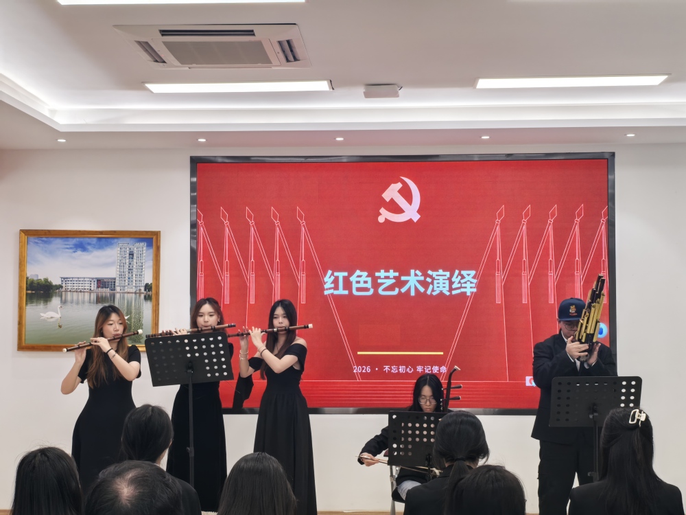红色艺术演绎环节将活动推向高潮。学生党员充分发挥专业优势,带来琵琶独奏《唱支山歌给党听》、笙独奏《微山湖船歌》、声乐独唱《不忘初心》及合奏《灯火里的中国》等精彩展演,以乐传情、以声颂党,将红色力量融入旋律,彰显青年党员昂扬向上的精神风貌。